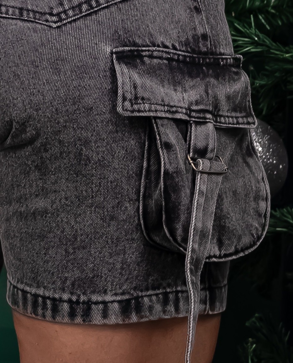 Bermuda jeans cargo bufante grafite, 100% algodão, com fitas reguláveis. Moderna, estilosa e disponível nos tamanhos 38 ao 46.Ler Mais
